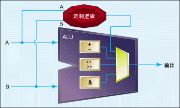 有兩種硬件加速模塊實(shí)現(xiàn)方式。其一是定制指令,它幾乎可在每一個(gè)可配置處理器中實(shí)現(xiàn),這是采用可配置處理器的主要優(yōu)點(diǎn)。如圖1所示,定制指 令是作為算術(shù)邏輯單元(ALU)的擴(kuò)展而添加的。處理器只知道定制指令就像其它指令一樣,包括擁有自己的操作代碼。至于C代碼,宏可自動(dòng)生成,從而使得使 用該定制指令跟調(diào)用函數(shù)一樣。