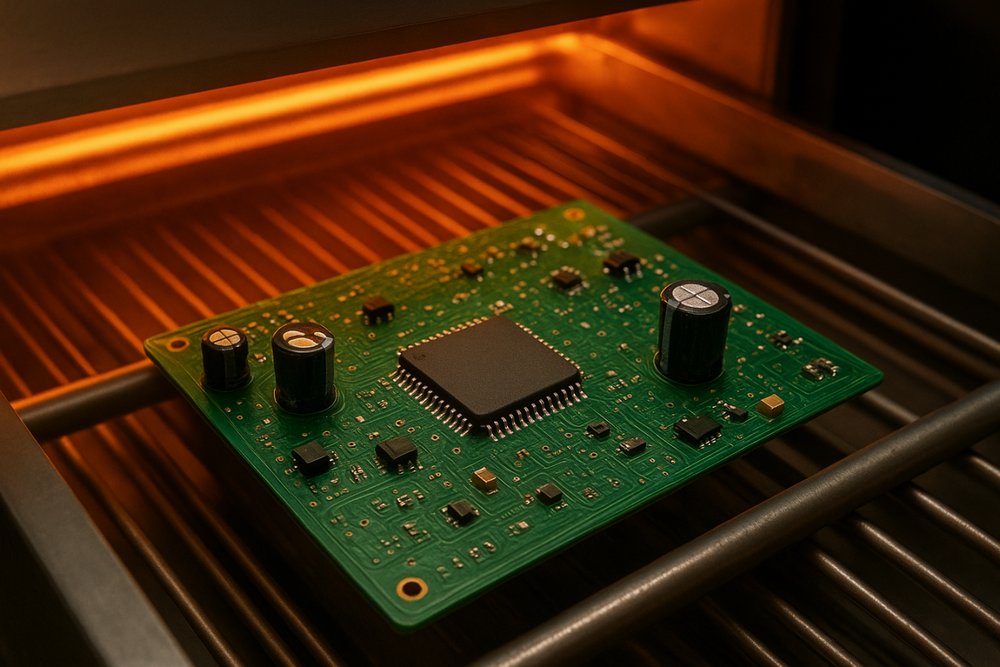 貼裝完成后,所有元件僅依靠錫膏暫時固定。要讓它們真正牢固,就必須經(jīng)過 回流焊接(Reflow Soldering)。電路板被送入高溫爐中, 經(jīng)歷“預(yù)熱—保溫—回流—冷卻”四個階段。當溫度至錫膏熔點時,焊膏中的金屬顆粒熔化,與元件焊盤結(jié)合,形成牢固的焊點。整個焊接過程的溫度曲線至關(guān)重要:溫度過低會焊不牢,過高則可能損傷元件。因此,回流焊不僅是“加熱”,更是一場受控的物理化學反應(yīng)——它決定了電路連接的長期可靠性。
