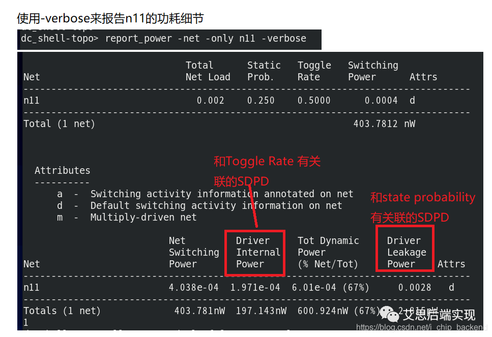 在report_power命令里邊,internal power被整合為cell類型,但是本質(zhì)上就是所有pin在SDPD下的總和表達。為了方便表達,工具使用了上述三種對象對功耗進行了分拆,總結(jié)如下