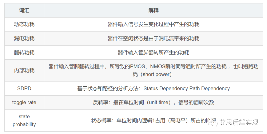 基于上述功耗的計算理論,為了方便計算,EDA工具對功耗的評估分為如下幾類基于library非功耗的信息,計算功耗