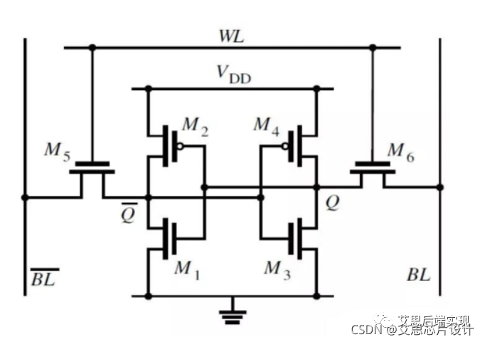 SRAM的核心存儲器件,通常被稱為bit cell。具體如下圖所示