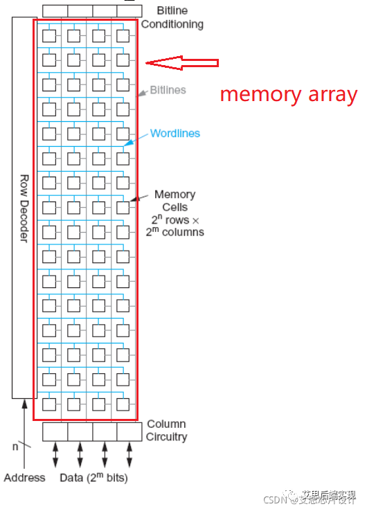 片載SRAM的結構拆解對于芯片上的SRAM,是由一個個bit cell拼接成一個矩陣,矩陣的橫豎分布被BL和WL來控制,這個由bit cell組成的矩陣通常就會被稱為memory array通常的SRAM都是由以下兩個部分組成的