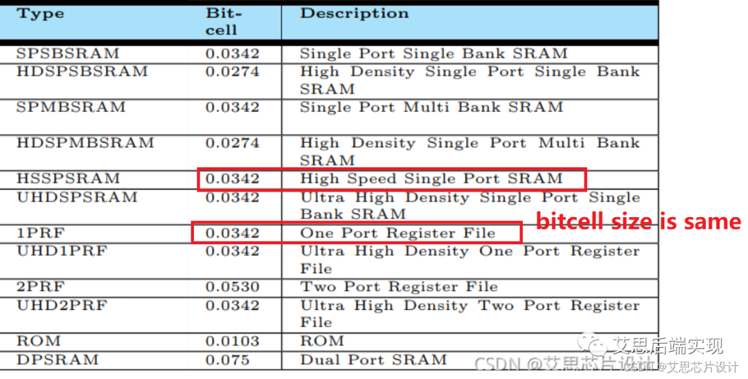在近現(xiàn)代的工藝上(60nm 以及以下),RF也是使用bitcell進(jìn)行構(gòu)建,所以從bitcell上來看,RF和常規(guī)的memory array的基礎(chǔ)期間是一樣大的,這個(gè)從T家的SRAM 文檔中可以看出來。