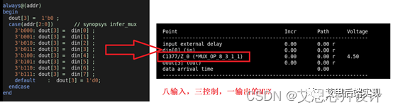 上述方法可以實現(xiàn)MUX,但是靈活度不是很好,也需要額外的流程和代碼量。這里看看DC的解決策略。