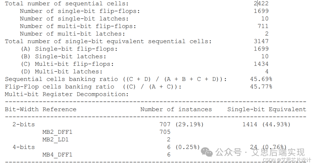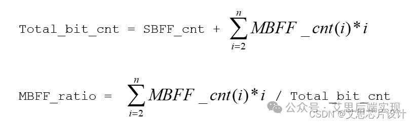 - Total_bit_cnt: 所有的SBFF和MBFF折算成SBFF對應(yīng)的bit數(shù)。這個(gè)也就是數(shù)據(jù)庫在不采用MBFF flow的時(shí)候的全部FF的數(shù)量