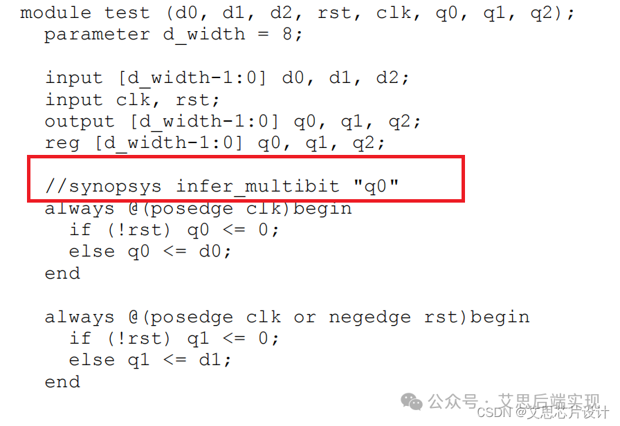 基于中后端設(shè)計(jì)流程,MBFF的第一個(gè)入口是RTL,DC用戶可以通過synopsys原語來知道DC對RTL相應(yīng)的設(shè)計(jì)進(jìn)行MBFF的構(gòu)建。PS:并非顯性地(explicit)在RTL中例化MBFF,這樣會(huì)對設(shè)計(jì)人員帶來很大的約束,也不利于后面的流程。-