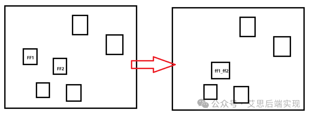 和in-compilre相比,這種in-place的MBFF封裝,最大的優(yōu)勢(shì),就是physical aware。譬如如下示意圖:
