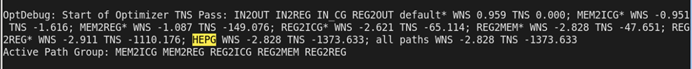 【圖6】datapath optimization per-HEPG工具會把所有的HEPG (high effort path group)在這里描述一下TNS/WNS,同時,后續(xù)的正常修復(fù)也是集中在HEPG組的(如Active Path Group行所示),所以HEPG越多,工具的考慮就會越多。PS:這里注意,default帶了一個*,其實他也是一個high effort組,