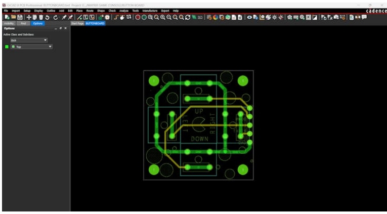在這個項目中,我們重新使用了之前的貪吃蛇游戲控制臺項目中的一個按鈕板。該PCB具有四個按鈕,每個連接到GND,以及四個輸出引腳,將連接到ESP32的GPIO引腳。通過按下每個按鈕,我們將GPIO引腳拉到GND,微控制器記錄按鈕狀態(tài)的這種變化。