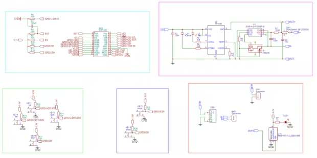 為了把它變成一個(gè)好看的游戲機(jī),我決定做一個(gè)PCB。在easyeda中,我設(shè)計(jì)了電路。我們的控制臺(tái)的主要部件或大腦是這個(gè)ESP 12e板。然后我附上了控制OLED顯示屏的按鈕,還附上了一個(gè)鋰離子電池充電電路。