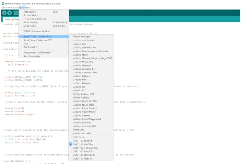 #6:在Tools > Board中,選擇XMC1100XMC2Go,并將串行輸出選擇設(shè)置為PC。