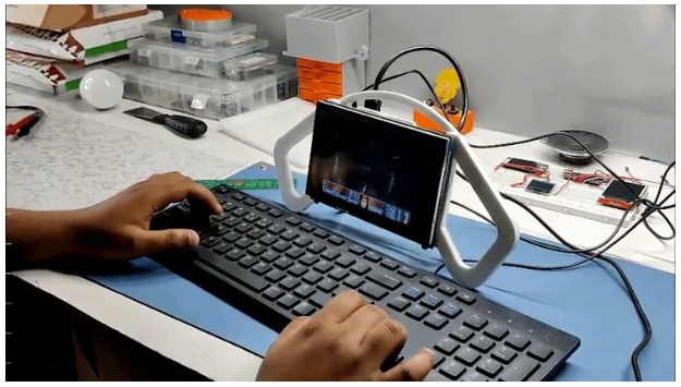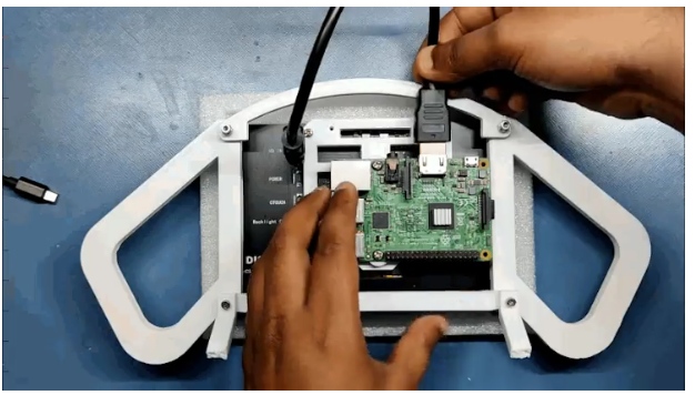 然后我組裝了整個(gè)顯示器,然后在顯示器的背面加上樹(shù)莓派模型3B+,并給出了安裝孔。