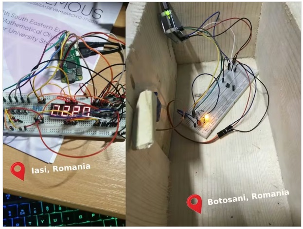 保險(xiǎn)箱的控制器有五個(gè)按鈕和一個(gè)顯示器。四個(gè)按鈕用于控制數(shù)字值(每個(gè)按鈕代表一個(gè)數(shù)字,按下后數(shù)值增加1,從9變?yōu)?),一個(gè)用于驗(yàn)證密碼,用于通過(guò)kafka在公共IP上將密碼發(fā)送給安全模塊。