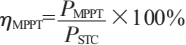PSTC為標(biāo)準(zhǔn)測(cè)試條件(STC)下的額定功率,PSTC=590 Wó則計(jì)算可得ηMPPT≈99.15%。