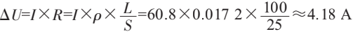 式中:ΔU為壓降;R為導(dǎo)線(xiàn)電阻;P為銅電阻率,P=0.0172Ω.mm2;L為電纜長(zhǎng)度;S為導(dǎo)體截面積,S=25mm2。