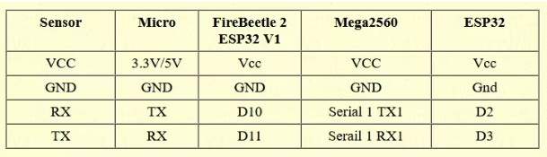 Serial1。開始(115200年,SERIAL_8N1 / * rx = * / D10, / * tx = * /這里);//本項目使用FireBeetle 2 ESP32 V1