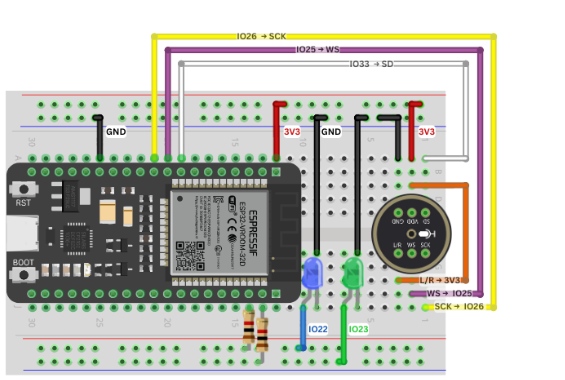 INMP441由于其低噪聲,MEMS結(jié)構(gòu)和數(shù)字I2S接口而被使用,使其成為音頻推理的理想選擇。