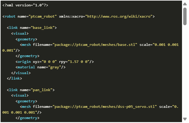 一個精確的統(tǒng)一機器人描述格式(URDF)對于保證相機、平移和傾斜幀之間精確可靠的坐標(biāo)轉(zhuǎn)換至關(guān)重要。