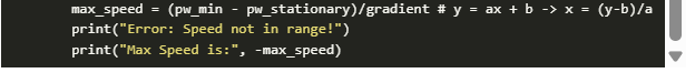?pw_stationary = (pw_max-pw_min)/2 + pw_min = 1.5 ms:這是電機(jī)速度為0 Hz時(shí)的脈沖寬度值(當(dāng)它靜止時(shí))。我們需要這個(gè)(或圖上的任何其他點(diǎn)),因?yàn)橐粋€(gè)線性函數(shù)需要一個(gè)梯度和一個(gè)點(diǎn)來完全定義。