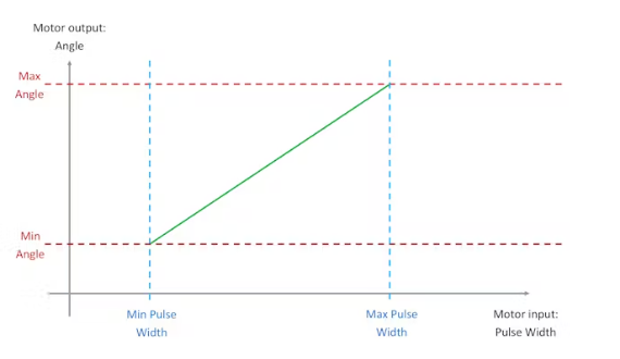 定位電機(jī)以脈沖寬度作為輸入,并將其映射到一定角度,如下圖所示: