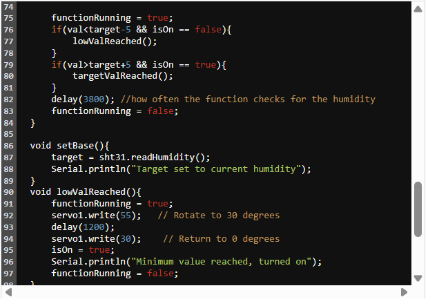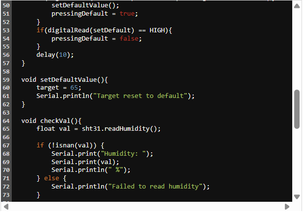 整個(gè)項(xiàng)目的核心是濕度傳感器。濕度傳感器將返回一個(gè)百分比值,該值將與一組閾值進(jìn)行比較,當(dāng)濕度水平過低時(shí),該閾值將激活加濕器,當(dāng)房間達(dá)到設(shè)定的濕度水平時(shí),它將關(guān)閉加濕器。此外,我決定創(chuàng)建一個(gè)按鈕,在按下該按鈕時(shí)將目標(biāo)濕度水平設(shè)置為房間的濕度水平,并將目標(biāo)濕度重置為默認(rèn)值。