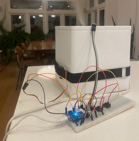 真正的唯一挑戰(zhàn)與創(chuàng)造這個(gè)相對(duì)簡單的家庭自動(dòng)化的過程是讓伺服操作得當(dāng)。伺服器與之交互的按鈕需要相當(dāng)大的力才能激活。通過將伺服器直接連接到加濕器上,它往往會(huì)把自己從加濕器上推下來,撕下膠帶(我最初的解決方案),或者增加尼龍搭扣帶的張力(我的最終解決方案)。這個(gè)問題相對(duì)容易解決,用尼龍扣帶代替膠帶纏繞在加濕器上,直接給伺服器提供足夠的力,使其不會(huì)從加濕器的表面升起。