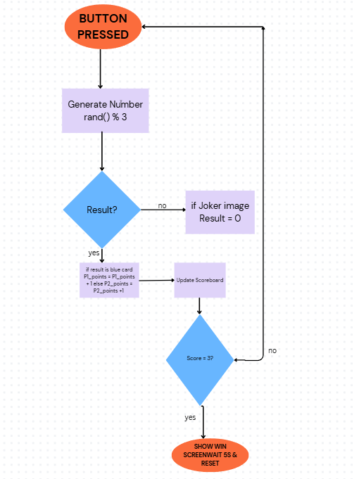 藍卡:如果“硬幣”落在藍色上,玩家1得+1分。紅牌:如果“硬幣”落在紅色上,玩家2得+1分。小丑/樂趣卡:一個中立的結果,獎勵0分,增加一個扭轉投擲。