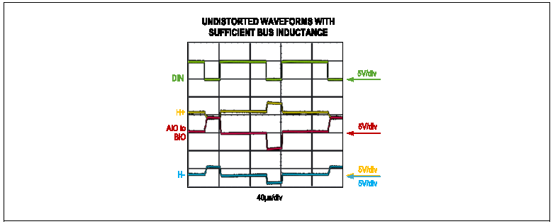 在圖10和圖11中,兩個(gè)Home Bus節(jié)點(diǎn)以50kbps的速率進(jìn)行通信,使用兩個(gè)獨(dú)立電感創(chuàng)建“交流阻斷”電感對(duì)。從表2可知,在50kbps數(shù)據(jù)速率下,所需的總線總電感為0.8mH。圖10顯示,當(dāng)使用兩個(gè)390μH電感來實(shí)現(xiàn)780μH的總電感(小于所需的最小總線電感)時(shí),接收器波形發(fā)生失真。電感對(duì)負(fù)載200mA電流,這進(jìn)一步降低了總線上的總有效電感。圖11顯示,當(dāng)電感對(duì)由兩個(gè)3.9mH電感構(gòu)成以實(shí)現(xiàn)大于所需最小值的總線電感時(shí),相同工作條件下的總線波形干凈無失真。