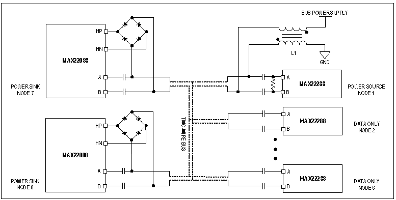選擇配合MAX22288供電節(jié)點(diǎn)使用的“交流阻斷”電感,對(duì)于確保多節(jié)點(diǎn)網(wǎng)絡(luò)可靠運(yùn)行至關(guān)重要。雙線總線需要兩個(gè)電感,或者說一對(duì)電感。