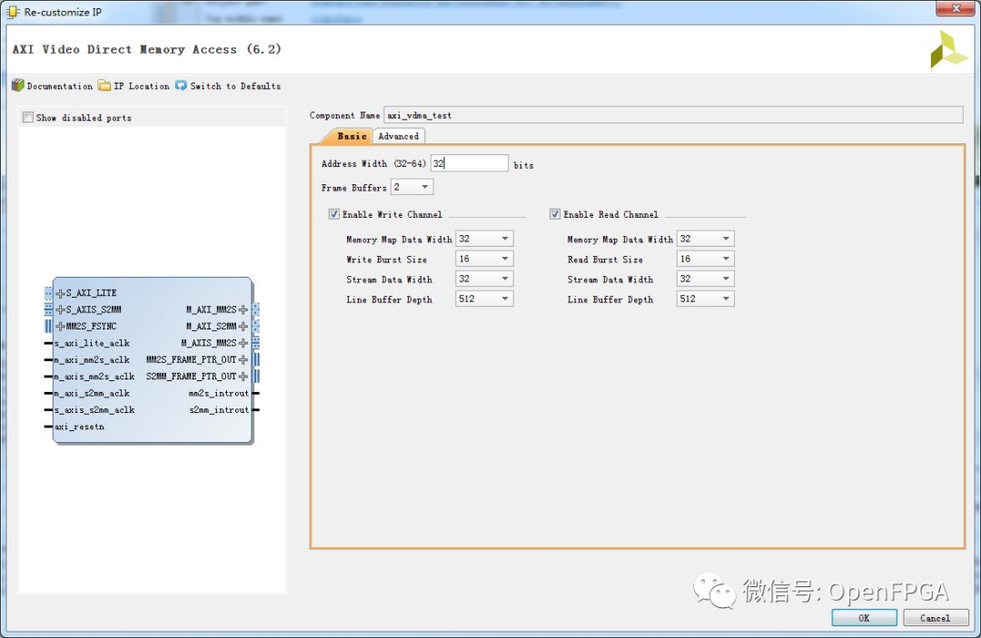 Frame Buffers :選擇vdma緩存幾幀圖像,這里默認(rèn)是寫通道和讀通道都設(shè)置相同的緩存幀數(shù),具體設(shè)置多少幀合適一般根據(jù)應(yīng)用來定,比如讀寫帶寬相同,想用ddr作為一個乒乓buffer,那就可以設(shè)置成2幀,寫第一個地址,讀第二個地址,寫第二個地址,讀第一個地址。這里面設(shè)置幾幀,就要在vdma寄存器配置的時候設(shè)置幾個幀起始地址。