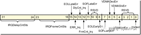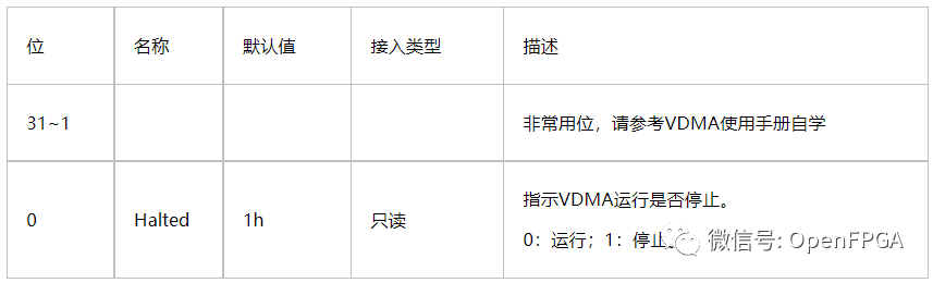 該寄存器用于獲取VDMA工作狀態(tài)。每一位作用如下圖所示,低4位是最重要的,接下來會詳細(xì)介紹。