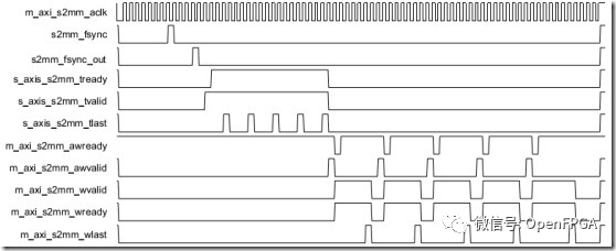 前綴S_、M_分別表示Slave和Master;后綴MM2S、S2MM說明數(shù)據(jù)流向是從memory map到stream還是從stream到memory map。