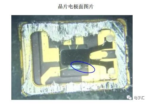 分析為該顆有源晶振通電后受到超出自身負(fù)荷的電壓及電流導(dǎo)致金線熔斷,電路出現(xiàn)斷路現(xiàn)象,造成晶振停振。后續(xù)經(jīng)核實(shí),證明確實(shí)如此。