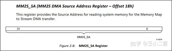該寄存器為DMA讀取system memory 的源地址(Source address),即MM2S通道讀取Bram中的數(shù)據(jù)的起始地址為0x00_00_00_00。