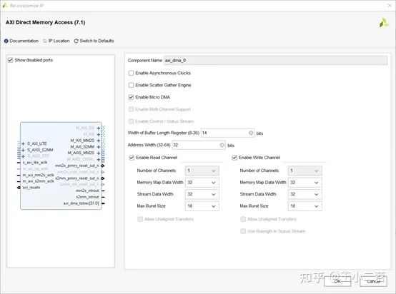 創(chuàng)建工程,添加DMA IP核,配置如下: