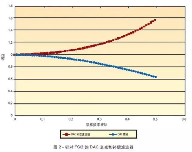 大多數(shù)DAC一直將模擬輸出保持到下一個采樣周期,這將對輸出頻率域產(chǎn)生良好的效果。用戶將注意到這兩個圖像均存在于整個輸出頻譜中,由于在0.5FS時正弦效應(yīng)將接近4dB(3.92dB),所有奈奎斯特區(qū)域中的輸出信號都出現(xiàn)衰減(如圖1所示)。這兩大問題均可利用濾波器來解決。