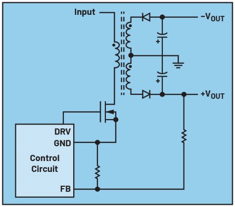 如果出于隔離目的而需要變壓器(比如在反激式轉(zhuǎn)換器中),那么只需在輸出側(cè)增加另一個繞組,就能非常容易地產(chǎn)生正負(fù)輸出電壓。在這個變壓器上,通過設(shè)置多個繞向不同的繞組,并配合使用隔離二極管,就能夠產(chǎn)生正電壓或負(fù)電壓,如圖9所示。例如,LT8306無需使用光耦合器來進(jìn)行反饋,從而節(jié)省了物料清單成本。