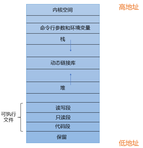 可執(zhí)行文件映像:存儲著可執(zhí)行文件在內(nèi)存里的映像,由裝載器在裝載時將可執(zhí)行文件的內(nèi)存讀取或映射到這里。