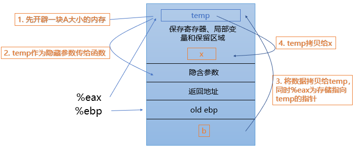 返回返回后將%eax指向的temp拷貝回被賦予的對象