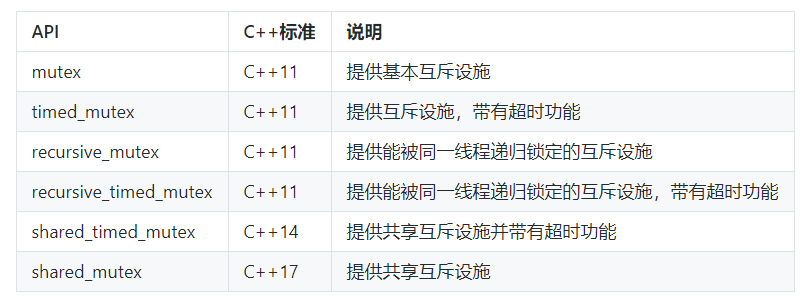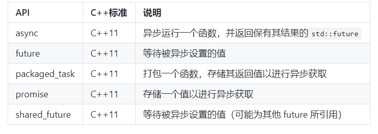 | API | C++標(biāo)準(zhǔn) | 說明 |