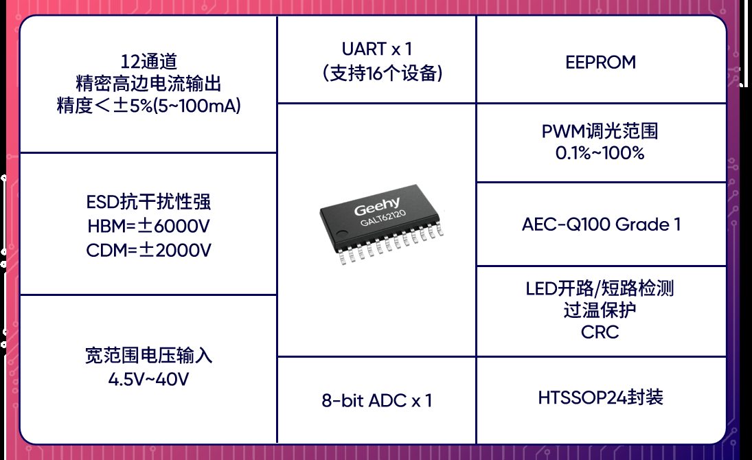極海正式發(fā)布GALT62120 12通道汽車高邊LED驅(qū)動器