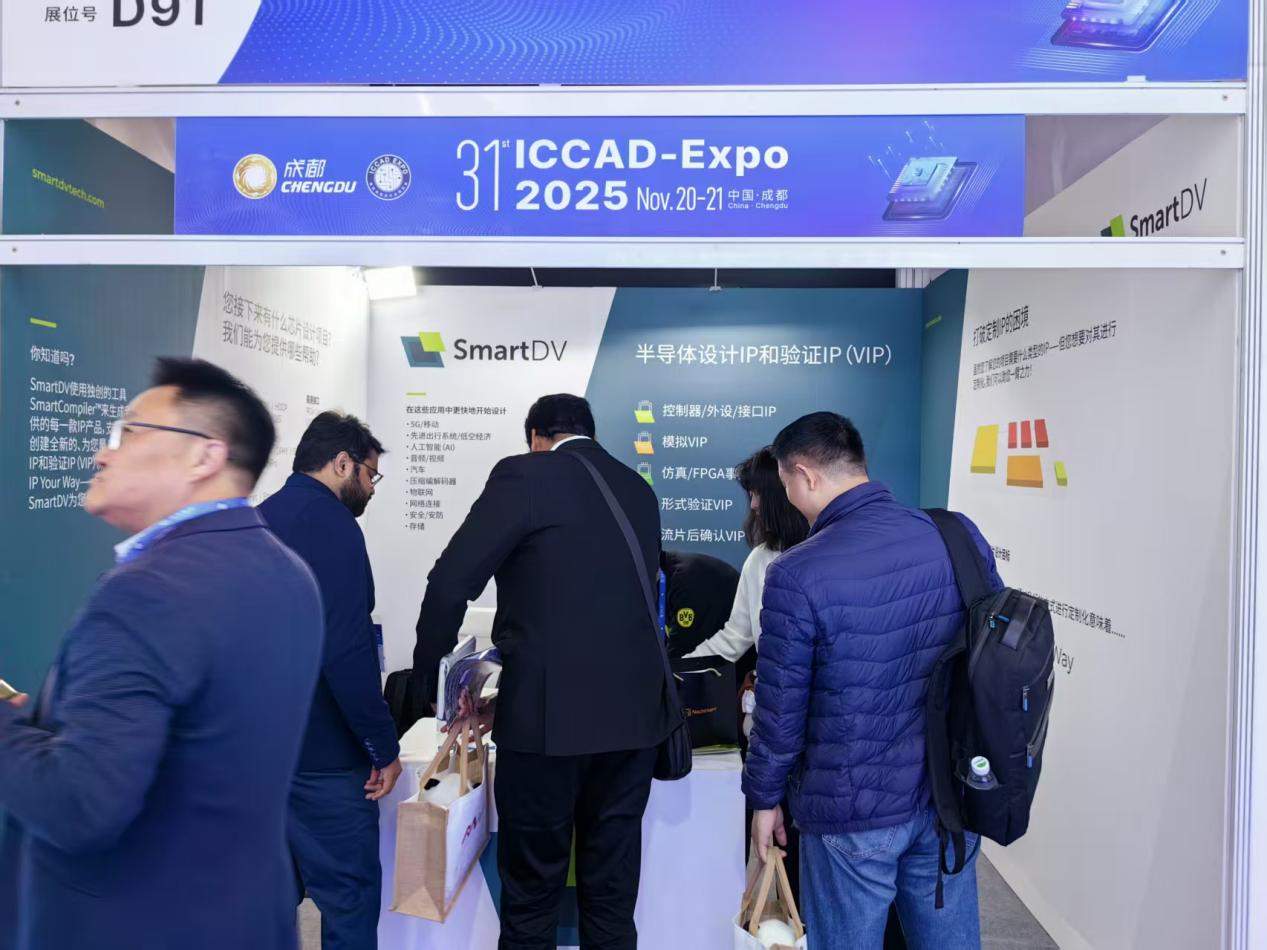 2025年11月20日-21日,“成渝集成電路2025年度產(chǎn)業(yè)發(fā)展論壇暨第三十一屆集成電路設(shè)計(jì)業(yè)展覽會(huì)(ICCAD-Expo 2025)”在成都·中國(guó)西部國(guó)際博覽城圓滿落幕。這場(chǎng)匯聚2000余家國(guó)內(nèi)外集成電路企業(yè)、300余家產(chǎn)業(yè)鏈上下游展商,逾6000位行業(yè)有關(guān)主管領(lǐng)導(dǎo)、知名專家與業(yè)界代表等嘉賓的行業(yè)盛會(huì),成為洞察產(chǎn)業(yè)趨勢(shì)、共探創(chuàng)新路徑的核心平臺(tái)。全球領(lǐng)先的半導(dǎo)體設(shè)計(jì)IP與驗(yàn)證IP提供商SmartDV Technologies?攜定制化解決方案、車規(guī)級(jí)IP產(chǎn)品及生態(tài)化服務(wù)重磅參展,并在專題論壇發(fā)表主旨演講,為中國(guó)集成電路產(chǎn)業(yè)的差異化發(fā)展與生態(tài)構(gòu)建注入強(qiáng)勁動(dòng)力。