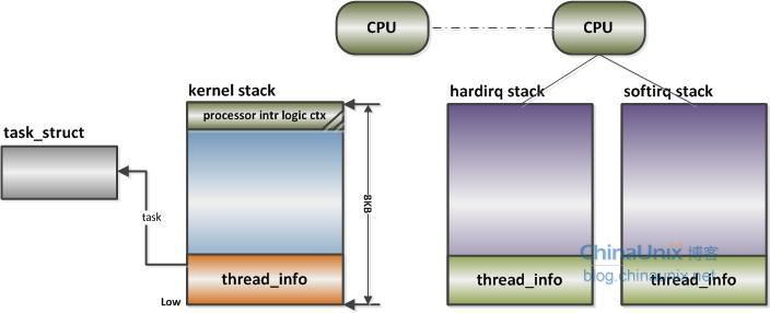 而 ARM 上中斷棧和內(nèi)核棧則是共享的;中斷棧和內(nèi)核棧共享有一個負(fù)面因素,如果中斷發(fā)生嵌套,可能會造成棧溢出,從而可能會破壞到內(nèi)核棧的一些重要數(shù)據(jù),所以棧空間有時候難免會捉襟見肘。