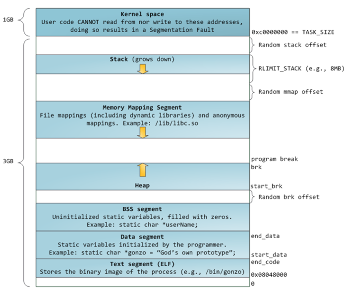 下圖為 Linux 內(nèi)核 v2.6.7 之后,32 位模式下的虛擬內(nèi)存布局方式。