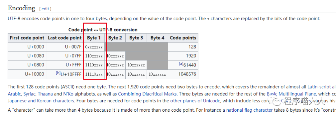 這里可以看到,通過Byte1的前4位就可以區(qū)分出這個字符究竟占用幾個字節(jié),所以就有了上述的遍歷方式。