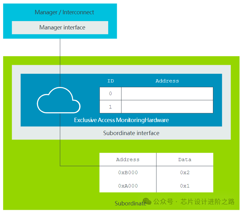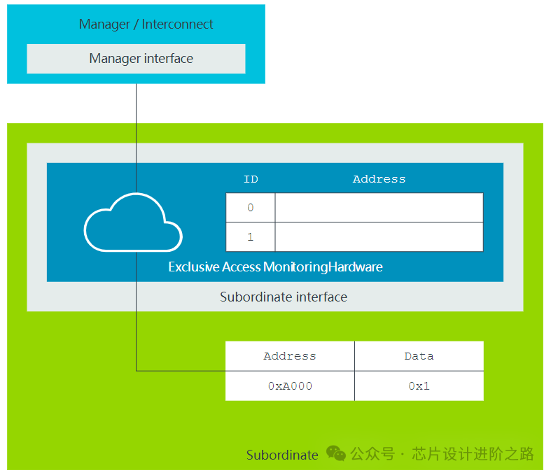 從屬接口包括可以為每個事務(wù)保存ID和訪問地址的獨(dú)占訪問監(jiān)控硬件。