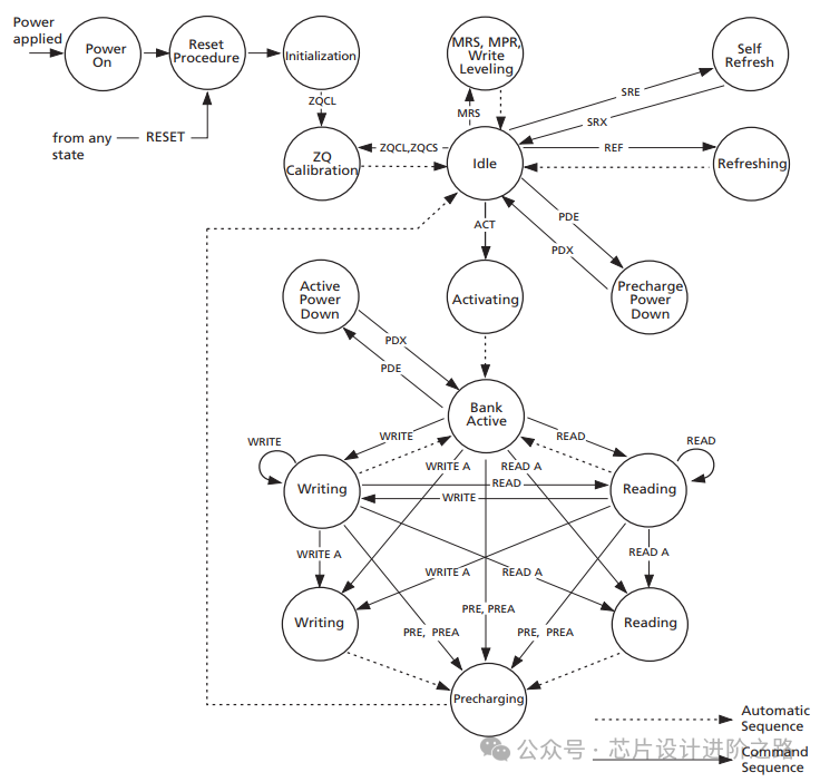 下面是DDR3運行過程的可能的狀態(tài)轉換: