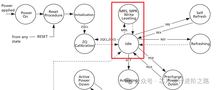 IDLE->MRS、MPR、Write Leveling->IDLE