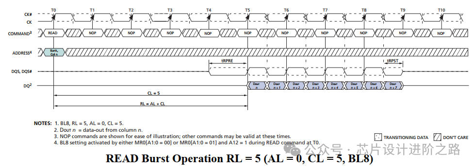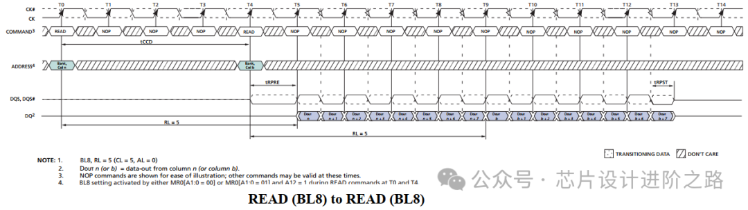 在Bank激活后,通過READ命令指定要讀取的列(COLUMN)地址。